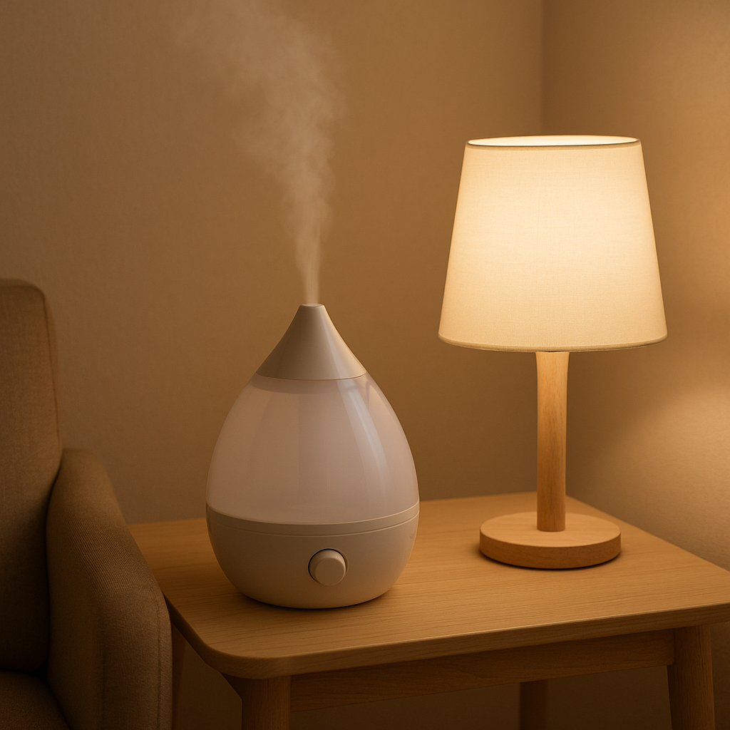 寝室にちょうどいい静けさ。お手入れもシンプルで、寝る前の1時間を静かに潤してくれる。 - デスクに合うタイプ: